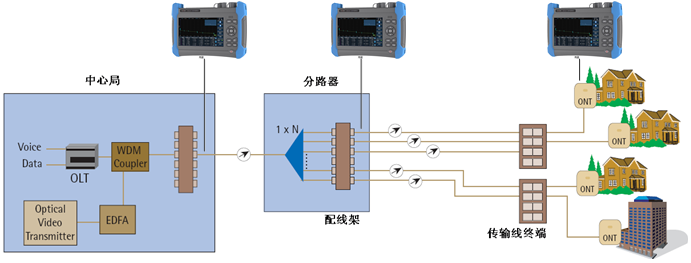 6422是光纖接入網及FTTx的測試儀器,內置有PON網絡測試功能,能夠透過多達1:128的光分路器,可以實現(xiàn)對PON網絡各分支的測試。