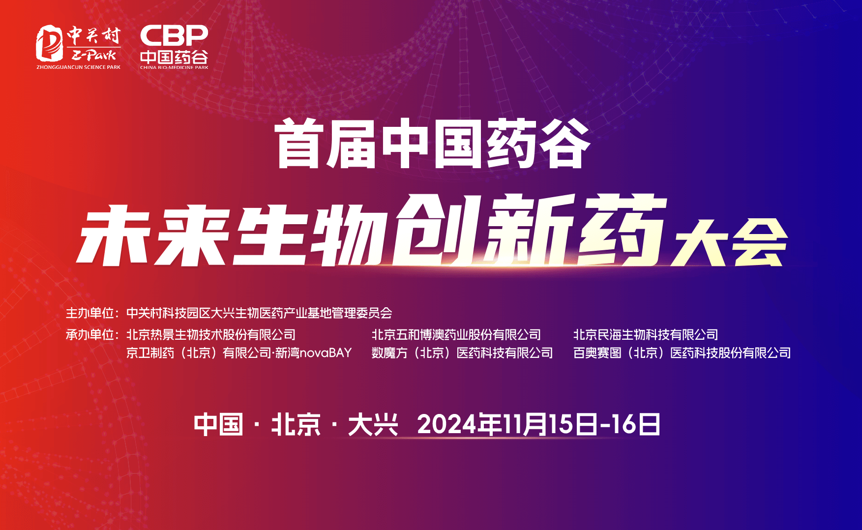 承辦單位:北京熱景生物技術股份有限公司、北京民海生物科技有限公司、北京五和博澳藥業股份有限公司、京衛制藥(北京)有限公司·新灣novaBAY、百奧賽圖(北京)醫藥科技股份有限公司、數魔方(北京)醫藥科技有限公司